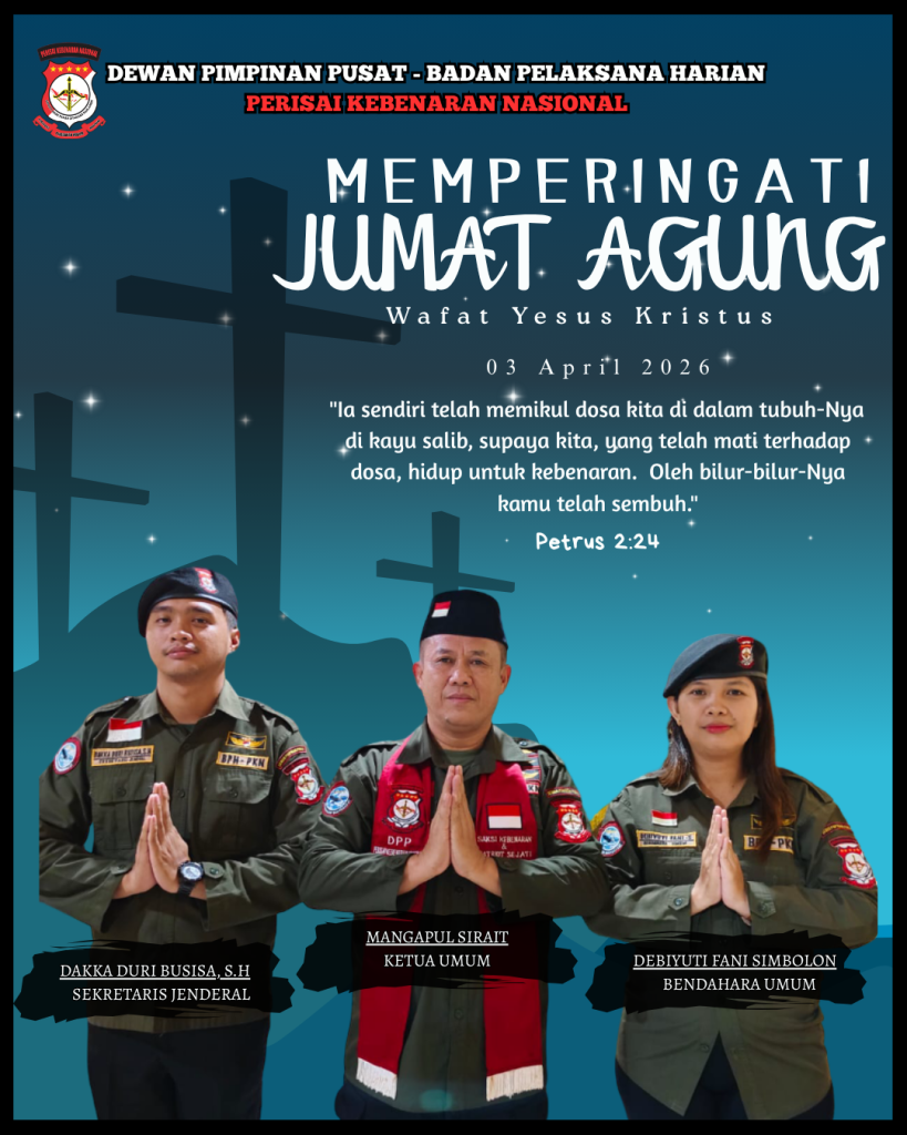 Salam Perjuangan Indonesia Berjaya Perisai Kebenaran Nasional Bersaksi, “Hukum dan keadilan harus ditegakkan sesuai dengan amanat Undang-Undang Dasar Tahun 1945, dan semangat juang kita adalah Pancasila.” MERDEKA …! .